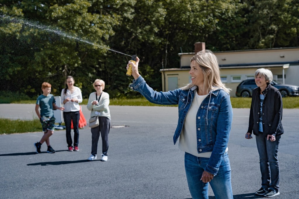 Dabei erklärte unser Trainer zunächst einige Grundlagen in der SV. Dabei geht es um das Verhalten bei einem Übergriff, die Gesetzlichen Grundlagen und welche Hilfsmittel eingesetzt werden dürfen. Dabei konnten die Teilnehmer auch verschiedene Hilfsmittel wie Pfefferspray und Schrill Alarme ausprobieren. Nach dem theoretischen Teil ging es dann zu dem praktischen Teil über. Dabei wurden verschiedene Angriffe und die entsprechenden Verteidigungstechniken geübt. Dabei waren die Teilnehmer immer wieder überrascht, dass es hier nicht um Kraft, sondern um Technik und absoluten Willen geht. Allerdings musste auch hier immer wieder mit entsprechend Abstand und mit Masken entsprechend den Corona Regeln geübt werden.