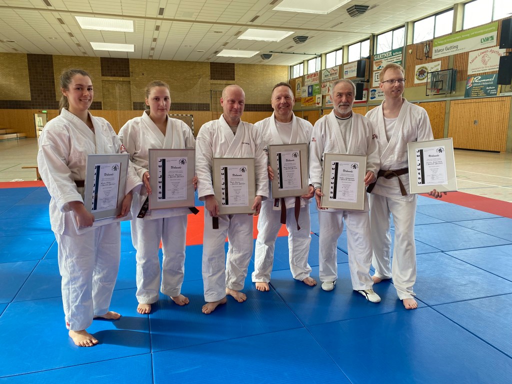 Nach fast 4 Stunden Prüfung konnten die Prüflinge alle ihre Urkunde zum 1.DAN in Empfang nehmen. Der Lohn für über ein Jahr intensives Training und Prüfungsvorbereitung zum 1. Meistergrad.