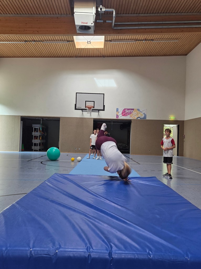 Der Samstag begann sportlich mit Frühsport in der Halle, bevor wir uns beim Ju-Jutsu-Training intensiv der Fallschule und insbesondere den Rollen widmeten. Dabei konnten wir viele Fortschritte sehen – besonders das Üben mit dem Gymnastikball hat allen großen Spaß gemacht und super funktioniert! Am Nachmittag standen Ballspiele und viel Bewegung auf dem Plan, abends wurde gegrillt, am Lagerfeuer Marshmallows geröstet und beim Werwolf-Spiel bis spät gelacht.