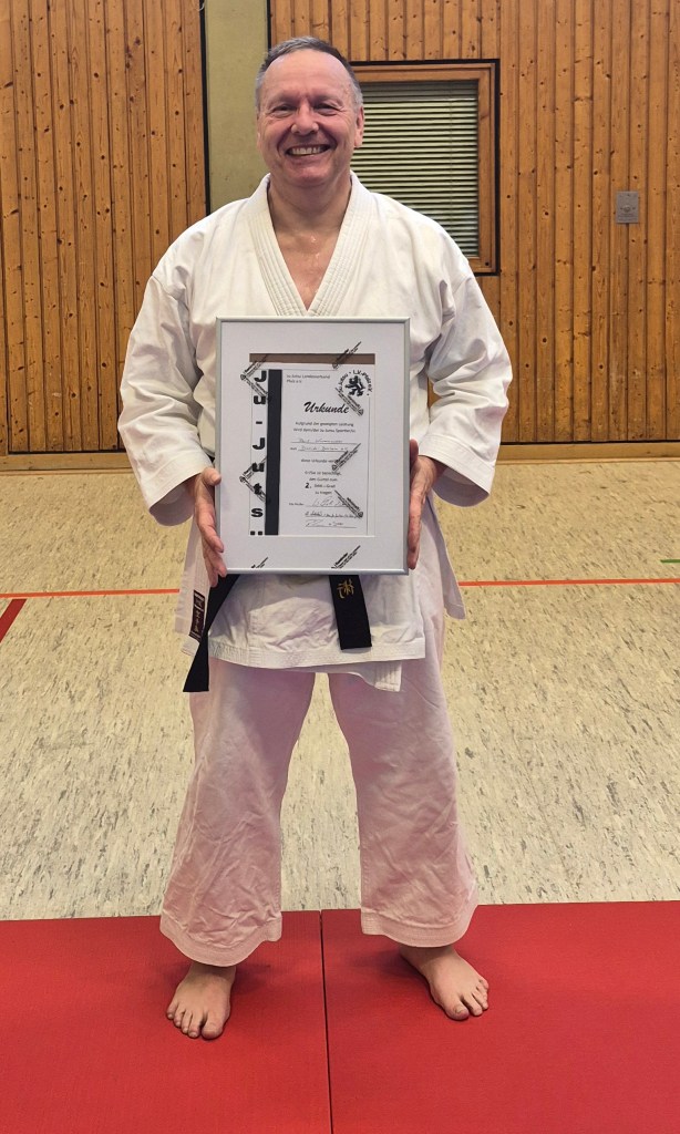 Nachdem er bei der Prüfung am 08.02.2026 leider verletzungsbedingt seine Prüfung abbrechen musste, legte Ralf Krummacker am 24.04.2026 seine Prüfung zum 2.Dan im Ju Jutsu mit Erfolg ab.